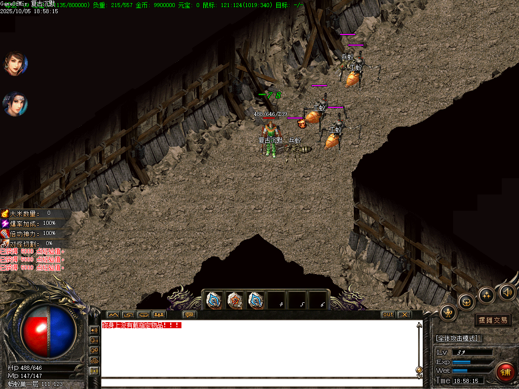 【版本介绍】:蚂蚁洞书页和魔石爆率超好,很合适新手去打,称号的转生的都有爆!